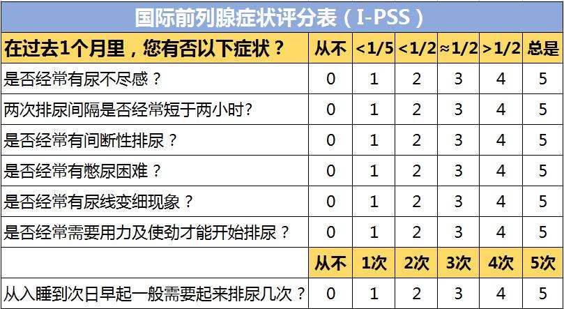 可以采用國際前列腺癥狀評分表:0-7分---輕度 , 8-19分---中度 , 20-35分---重度